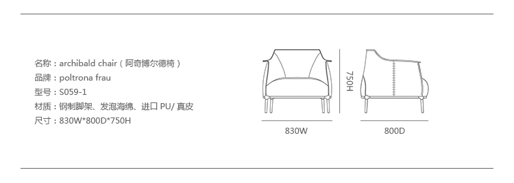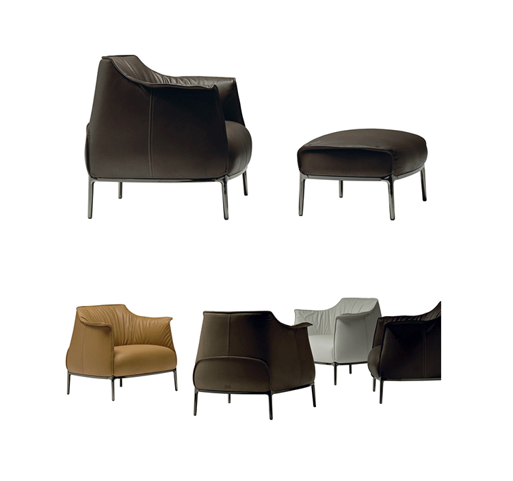 Archibald Chair(阿奇博尔德椅)皮革扶手沙发椅是由设计师Jean-Marie Massaud在2006年设计的. 藉由圆弧型和包覆型的柔软特性, 以及在椅背上有波浪皱折的特殊设计, 更为这组沙发带来无与伦比的舒适感。一张舒适的扶手沙发椅, 内藏着钢制的结构并填入聚氨酯泡沫体和巧妙地结合棉絮, 更加保证了这张沙发椅的最高舒适感。阿奇博尔德Archibald皮革扶手沙发椅是非常讲究细节的, 如沙发边缘的对比缝制法和经过钢制精加工的直管沙发脚。