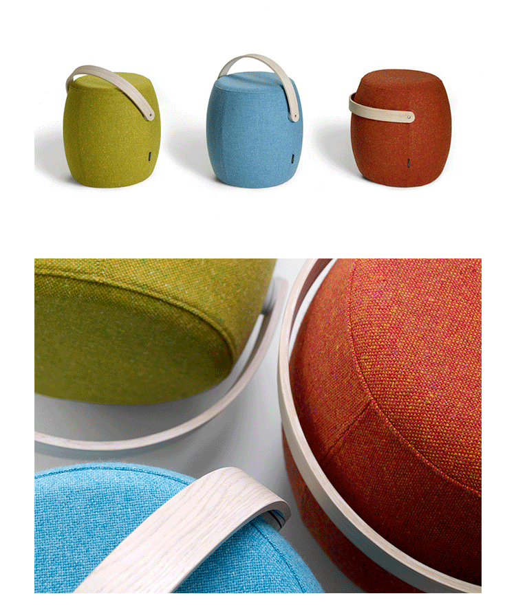 来自斯堪的纳维亚studio vision A&D的设计师和建筑师mattias stenberg设计了“carry-on”便携式小家具。这个设计的灵感来自于传统木桶的形式,设计师在桶表面包裹了一层毛绒布软垫,并搭配一个实木把手。“carry-on”有多种功能,它可用作小凳,脚凳或是摆放物品的台座。这个设计在2012年斯德哥尔摩家具/灯具展览会(stockholm furniture and light fair)上展出。同时,这个设计的展位也“greenhouse”展场的一部分,专门用来展示年轻设计师的作品。